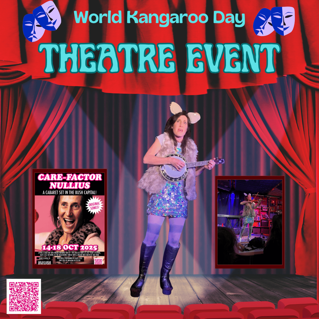 In 'Care Factor Nullius', award-winning singer, songwriter, musician and performer Katie Cole brings her original songs about Odette an Eastern Grey Kangaroo, originally from the Bush Capital but now making her way in the Big Smoke working for Tourism Australia… Or is she?! Laugh, cry, and sing along as the myth of Australia’s reverence for its most iconic indigenous animal is turned into a musical thriller before your eyes!